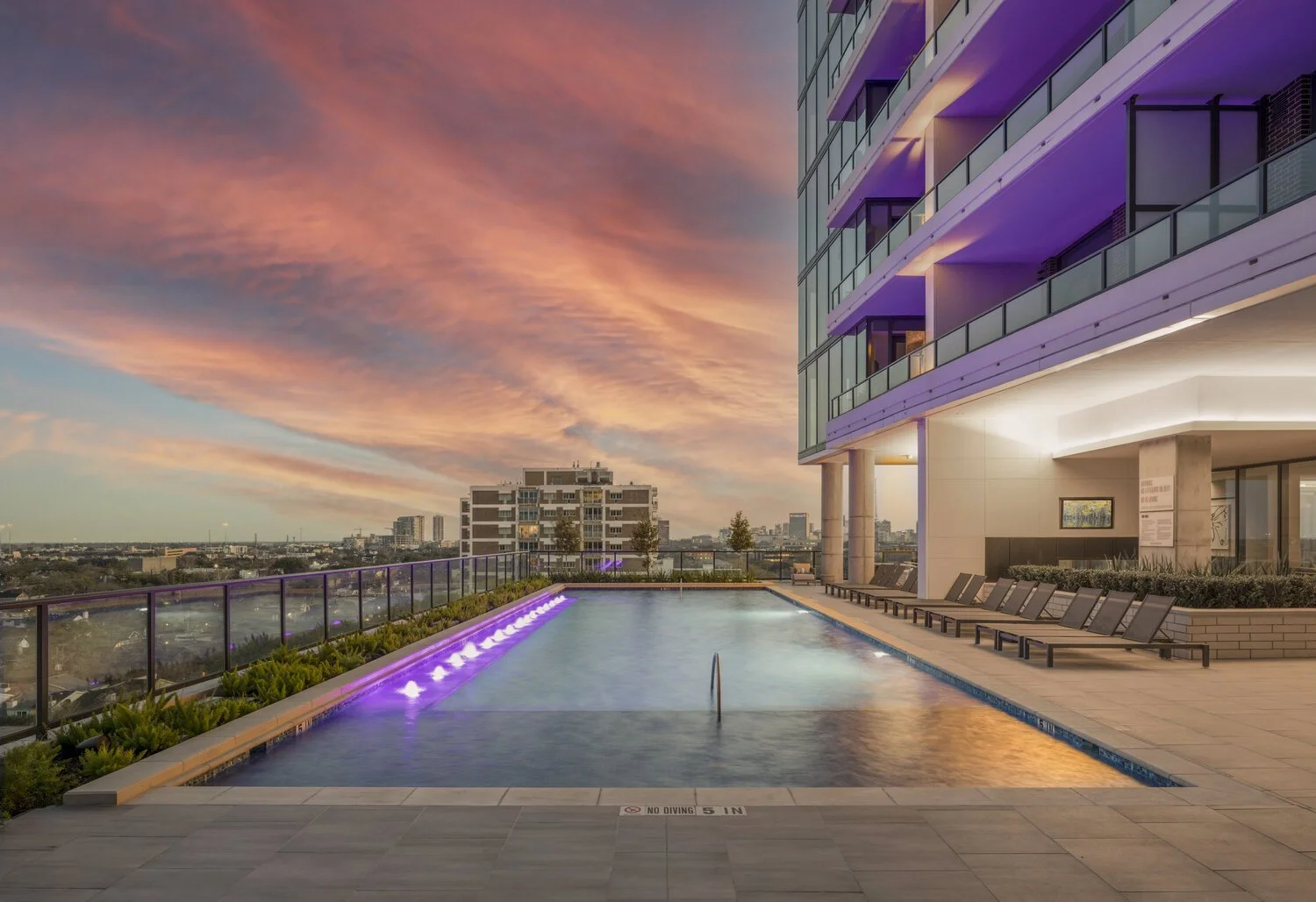 This state-of-the-art rooftop pool is positioned on the 10th floor of the Tower, providing stunning views of the downtown Houston area. Escape the heat and enjoy the outdoors with a long swim in the pool. Have a lazy poolside day in the best spot to stay in Houston. Unwind after seeing the beautiful city and lounge in our cozy space. Visit our full service outdoor bar located near the pool. Book a room in the great state of Texas at our luxury hotel in your home away from home. Check out Houston and be sure to stop by our rooftop pool.